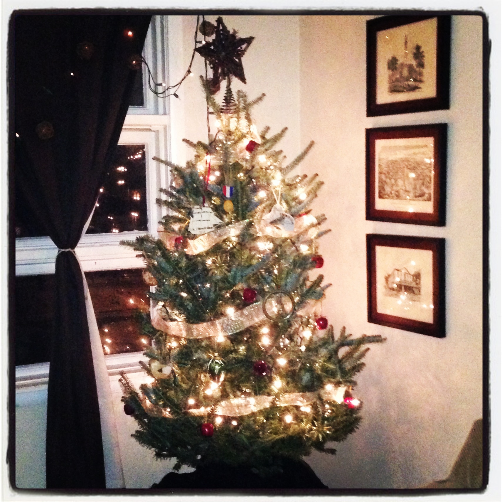 I braved the cold and rain last night and bought myself a Christmas tree. It’s about 4′ tall or so – really little and cute which makes it so much easier to decorate. Haven’t had this size tree since my last year at West End.