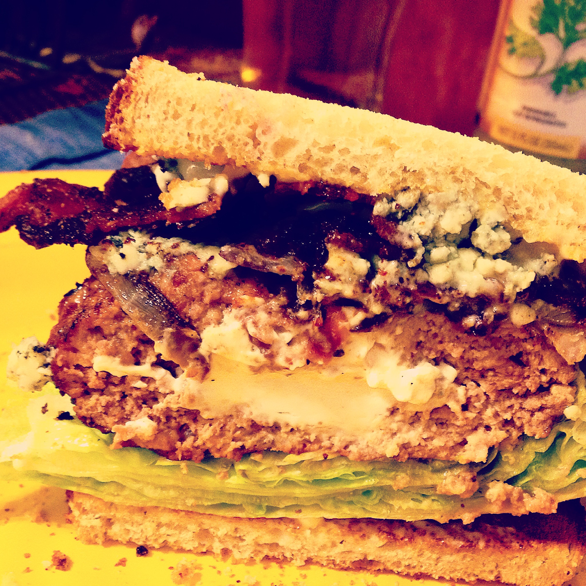 Speaking of pictures, I meant to upload this one before now but forgot. This was from…..um, last Saturday I think. We went to Beaman and did the 4.5 mile trail, then hit up Kroger for food and beer. Went back to Stephen’s where we grilled potatoes and hamburgers, and it was SO GOOD OMG. Stephen likes to doctor up the meat, and so these burgers were part pork, part beef, with stuff like mustard, spices, bleu cheese, etc mixed in. OK I wasn’t paying all that much attention to what he put in them. The best part though, was that he stuffed them with cream cheese. Guys, believe me when I tell you that you want to start putting cream cheese on (or inside) your burgers from here on out. Make it as much as necessity as salt and pepper. You’ll thank me. At least, your tongue will.