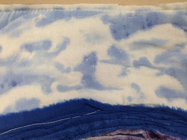 2) Obviously I need to use a darker thread when stitching in the blue and purple hills. Oops.