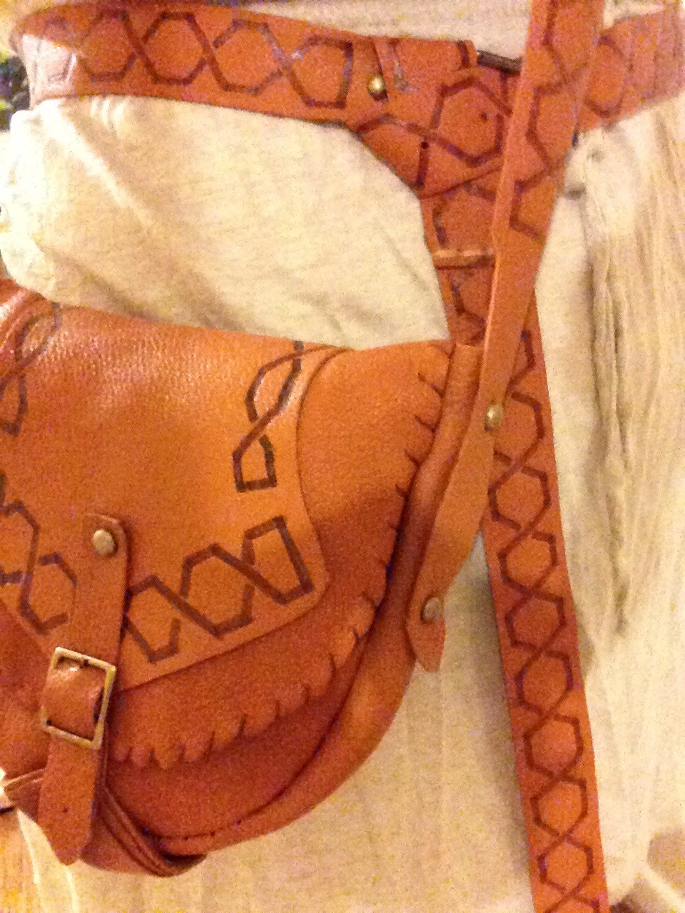 I know, the one on the right isn’t a great picture, but it gives you a pretty good idea of how it turned out. The guy who bought it said that he’s cosplaying as a Skyrim mage, so this was pretty much perfect for that. I think the burned pattern is slightly off, but I just made it to match the actual apothecary satchel so whatever.